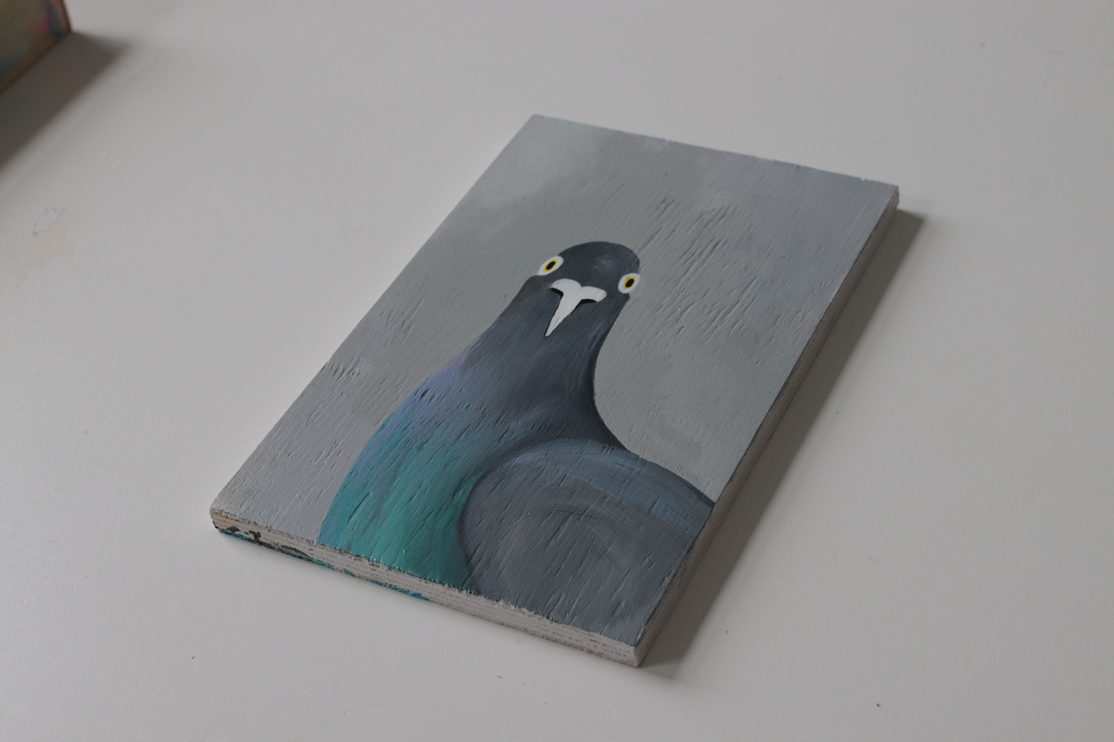 Op de Vailantlaan reed ik - perongeluk - een duif dood. De Duif keek nog even op, maar het was onvermijdelijk. Ik besloot De Duif te portretteren. Zo lang als het goed is.